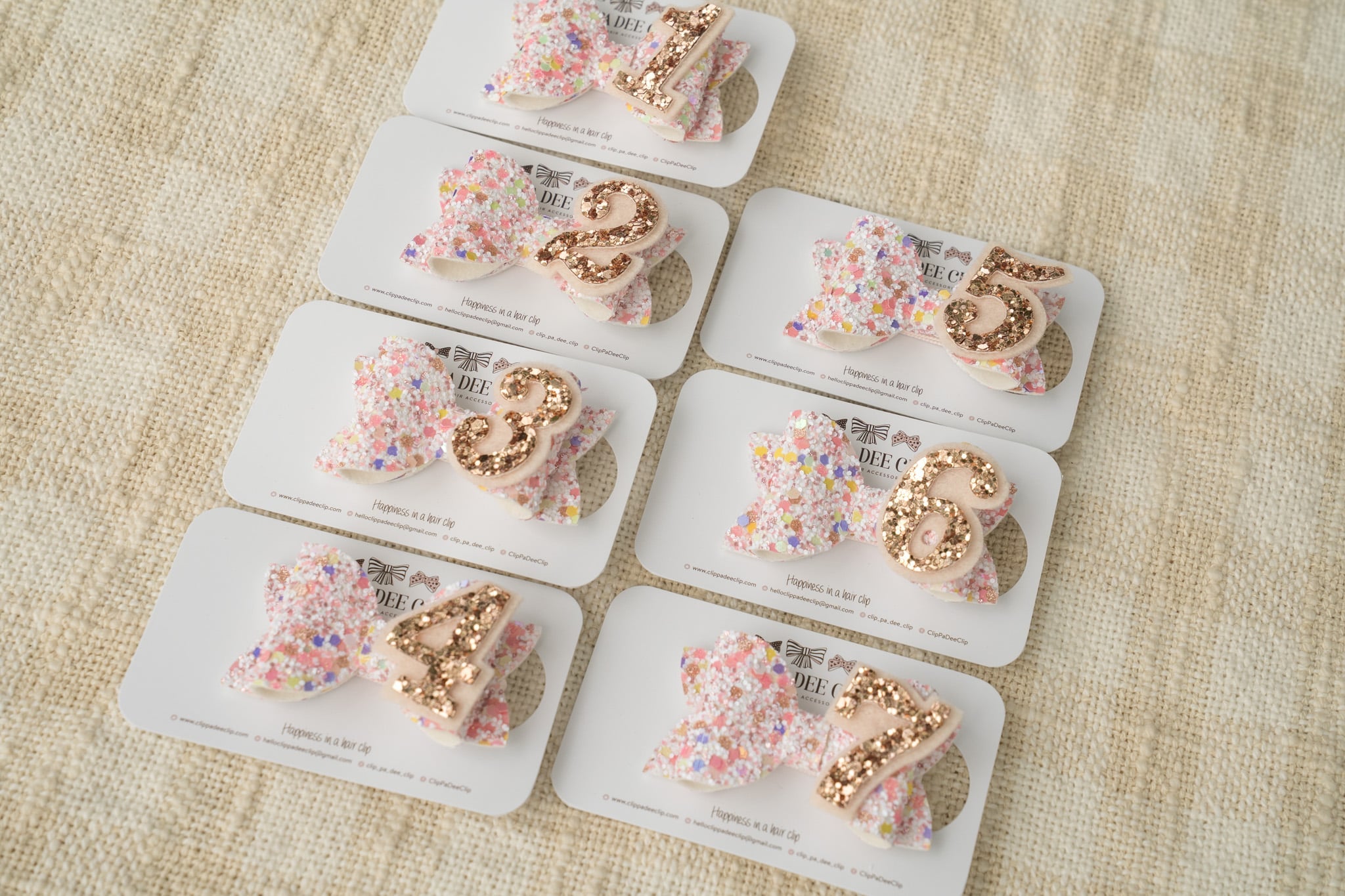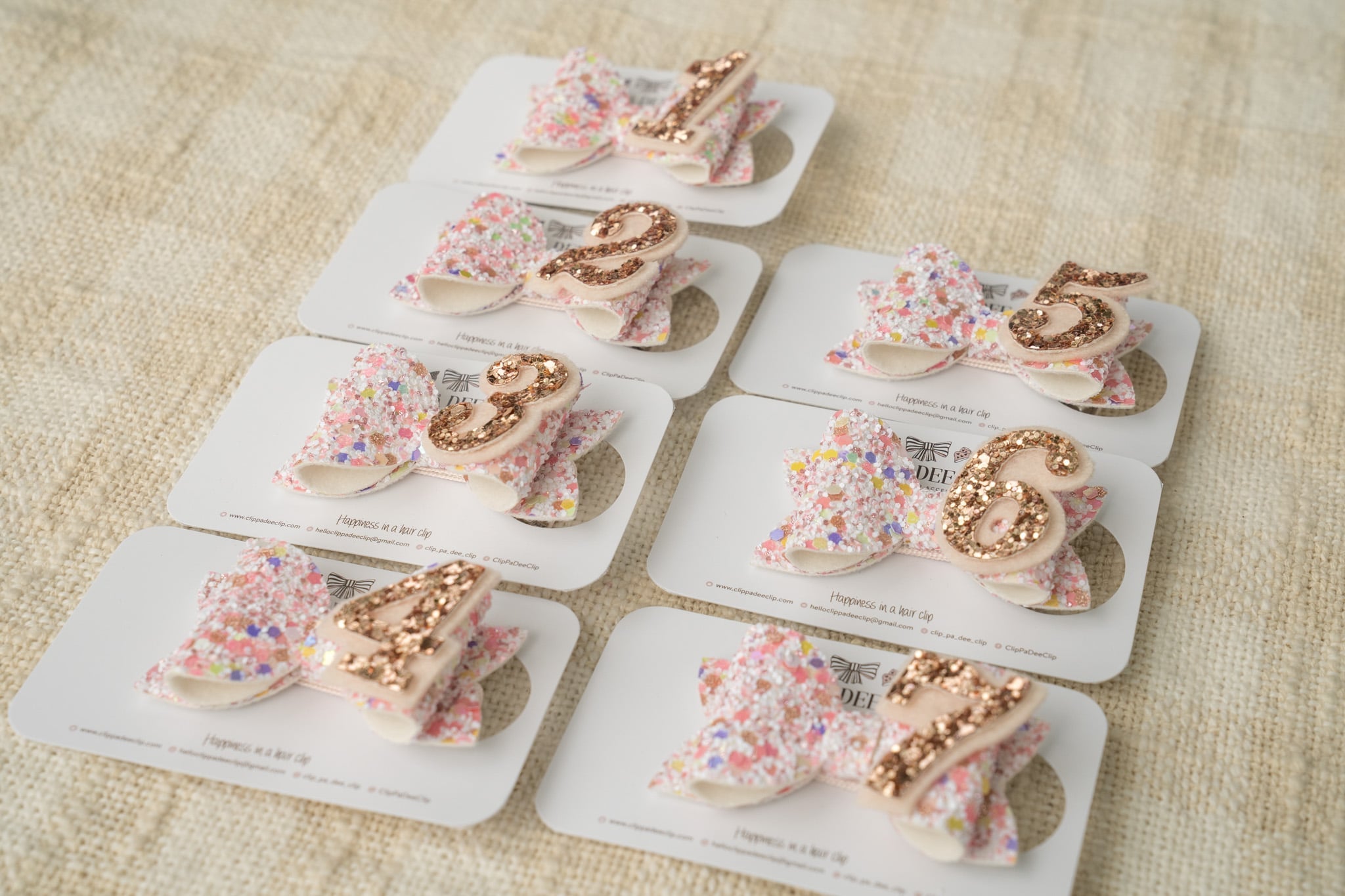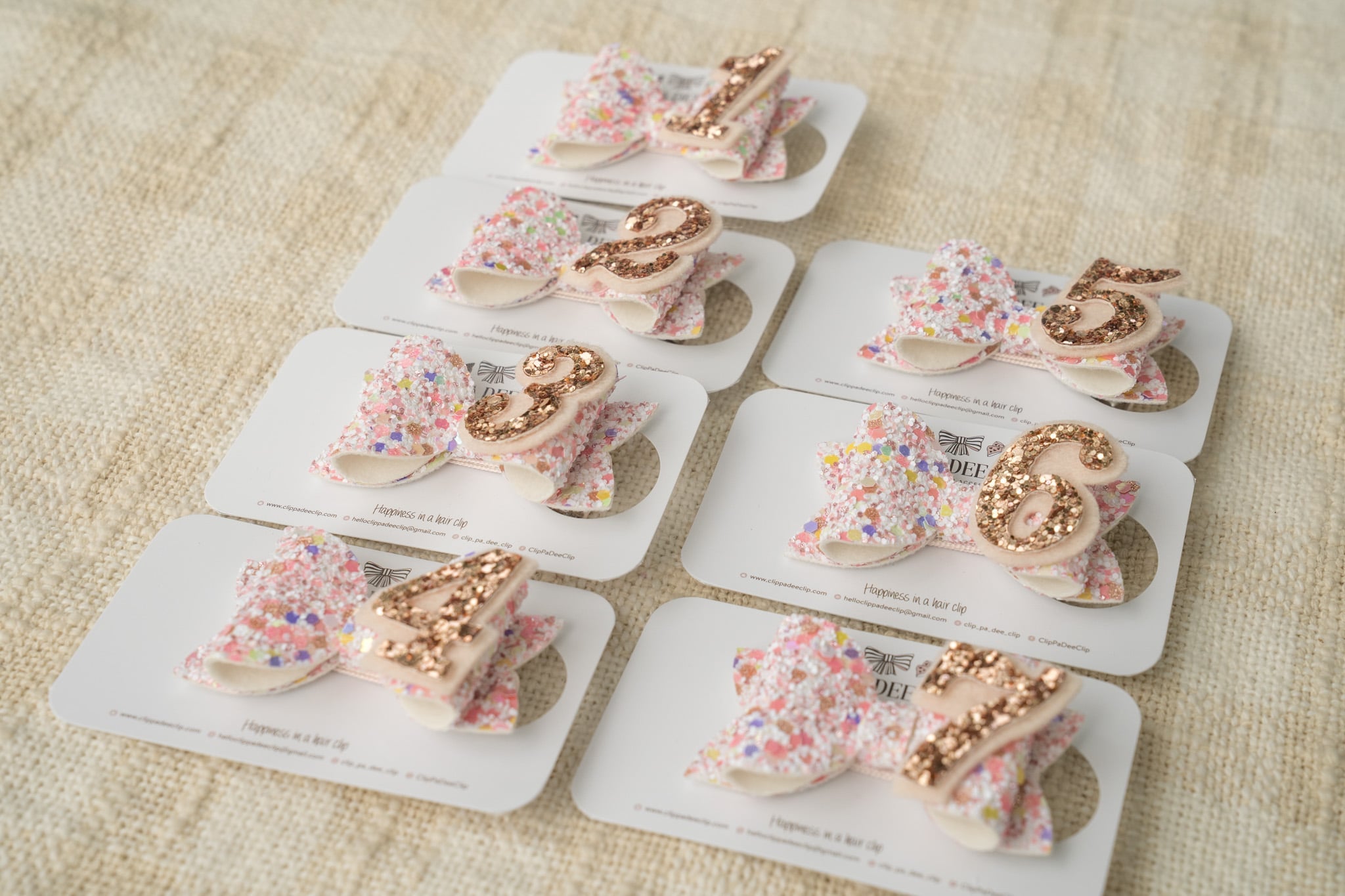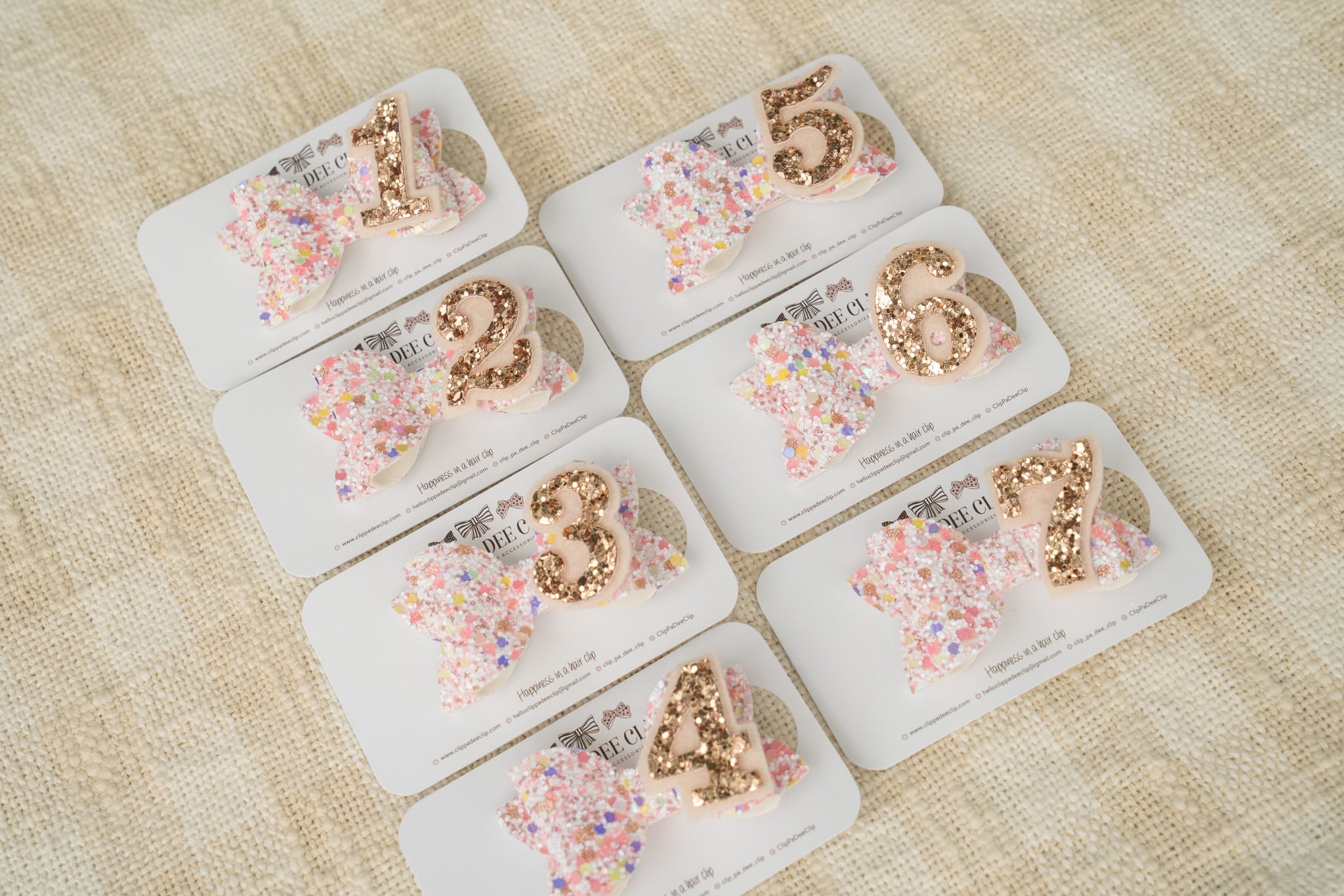 Please contact me at helloclippadeeclip@gmail.com if you require a different number or would like to make a custom design. Thank you.